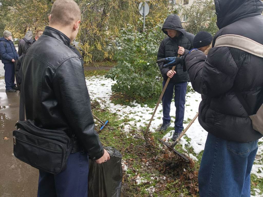 В первую неделю трудовых десантов 7 октября первокурсники группы ПМ 2511 под руководством куратора и руководителя экологического отряда лицея Вишнивецкой Татьяны Александровны навели порядок и красоту на подведомственной территории: под метелочку почистили асфальтовые площадки, цветочные клумбы, убрали облетевшую листву и мусор на красной линии улицы Профинтерна и на внутридворовой территории.