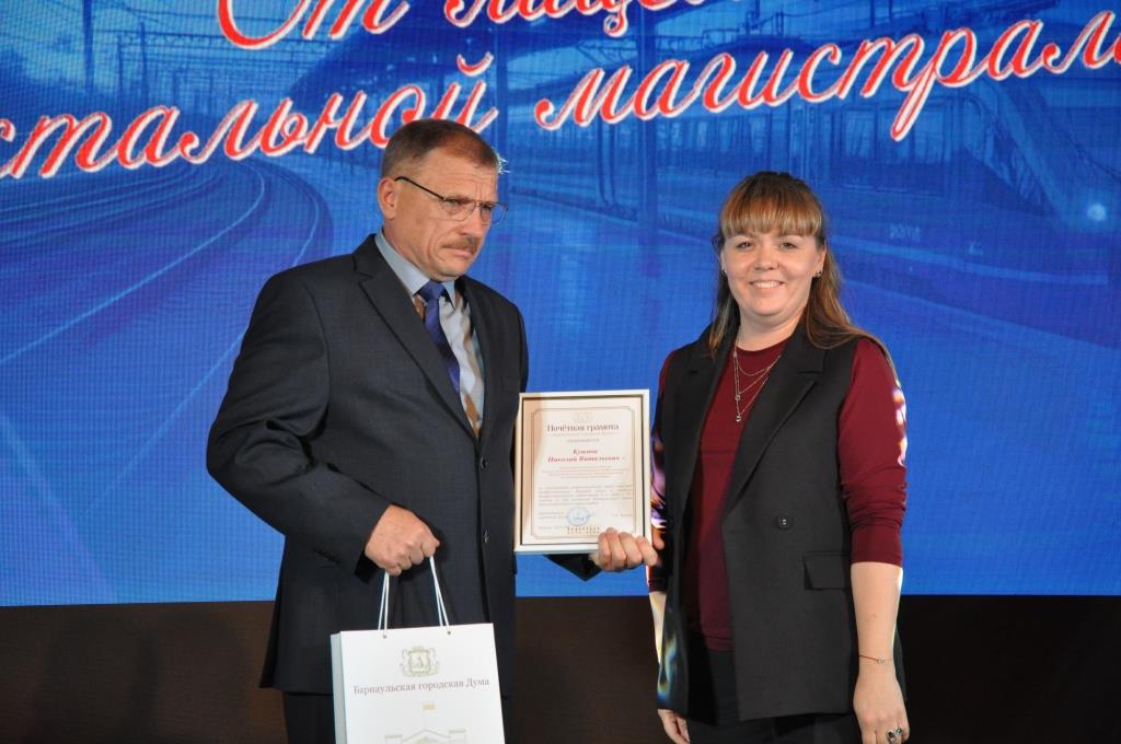 В праздничной атмосфере заместитель начальника Западно-Сибирской железной дороги по Алтайскому территориальному управлению Кульдишов Андрей Александрович, вручая педагогическим работникам Благодарственные письма за качественную подготовку квалифицированных специалистов, поздравил коллектив отметив, что его трудовой и ратный труд продолжает вдохновлять новые поколения лицеистов на хорошую учёбу, трудовые рекорды и свершения