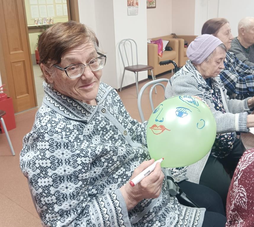 Открыла и познакомила участников мероприятия друг с другом наставник Ирина Иванова. Денис Ивонин исполнил под гитару песни Виктора Цоя. Полина и Екатерина рассказали стихотворения о дружбе и пожилых людях. Софья провела мастер-класс по оригами и все вместе сделали веселых собачек. Маргарита Книс исполнила песни «По любви» и «По-русски». Активисты первокурсники помогли пожилым людям нарисовать на воздушных шариках веселые мордашки. В заключении оформили совместный плакат с пожеланиями и рисунками ветеранов, который будет напоминать о нас и вызывать положительные эмоции. И конечно ребята немного пообщались с жителями дома –интерната.