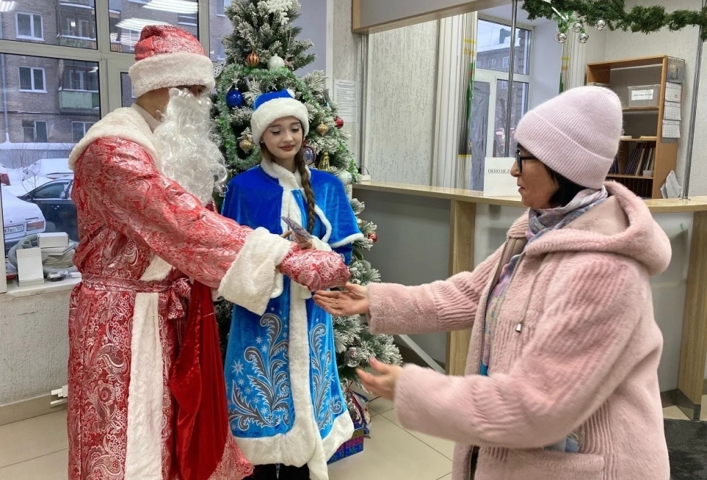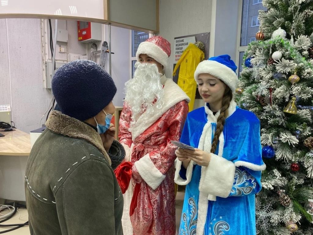 Активистка лицея Виктория Гуданова приняла участие в акции «Российский Дед Мороз» организованной специалистом комитета по делам молодежи, культуре и спорту Железнодорожного района Полиной Манузиной. Виктория успешно справилась с ролью Снегурочки. Дед Мороз и Снегурочка поздравили работников и посетителей поликлиники № 3.