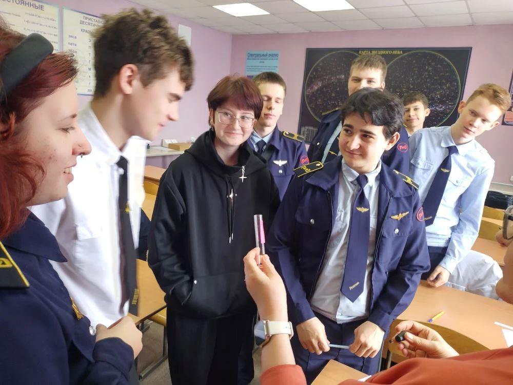На станции химии ребята определяли вещества по запаху, объясняли процессы, происходящие в пробирках. Химический калейдоскоп стал возможен благодаря преподавателю химии Людмиле Геннадьевне Ткаченко.