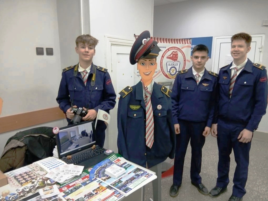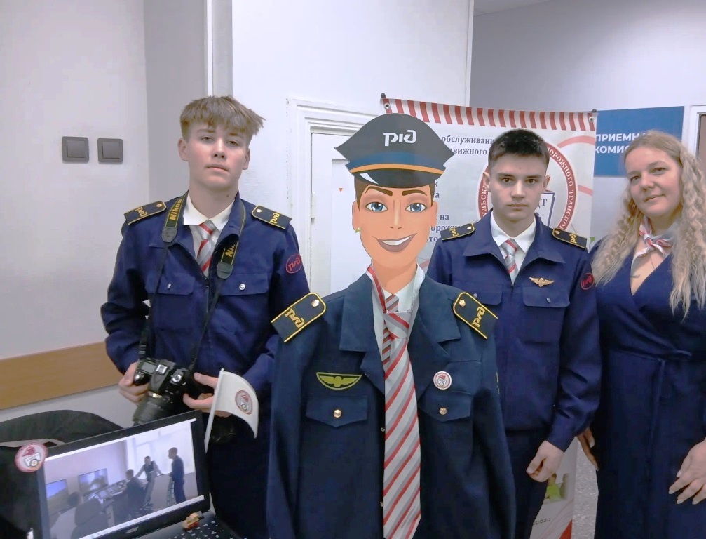 Наш лицей представили: секретарь учебной части, куратор Вишнивецкая Т.А., заместитель директора по учебно-воспитательной работе Соловьева А.В. и обучающиеся 1 курса группы ПМ 2511 профессии 23.01.09 Помощник машиниста (по видам подвижного состава железнодорожного транспорта (электровоза)-Василенко Савелий, Дяденко Алексей и Островских Кирилл.