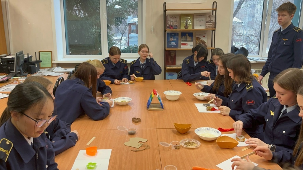 11февраля в библиотеке лицея Василенко Савелий, Селиванов Илья и Гольнев Дмитрий провели мастер –класс по изготовлению экологичных, съедобных кормушек для птиц. В изготовлении кормушек приняли участие девушки активисты группы ПР 2511. Корм для птиц в зимнее время очень нужен для синиц, воробьев, свиристелей. Кормушки девушки и юноши сделали из круп, семечек, орехов и ягод – основой стали мука и вода. Юноши оказывали помощь девушкам при изготовлении клейстера- основы для кормушек.