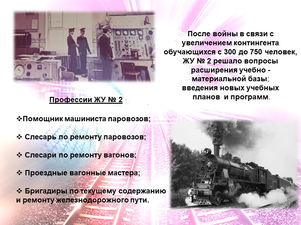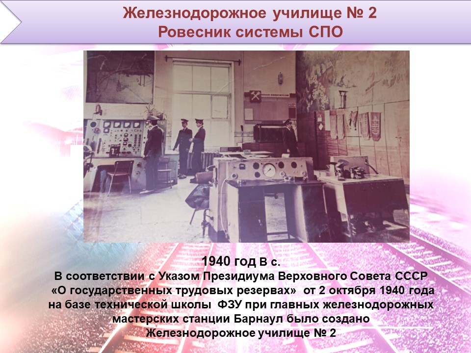 Среди 54 Героев Советского Союза – воспитанников Трудовых Резервов – 3 вышли из стен училищ Алтайского края. Один из них – выпускник ЖУ №2 - Владимир Степанович Рублевский. Училище гордится своими выпускниками - полным кавалером Ордена Славы, участником Парады Победы - Н.М. Коваленко, участником Сталинградской битвы, отмеченным медалями и орденами – П.К. Колесовым.