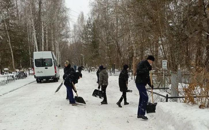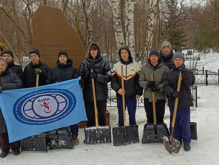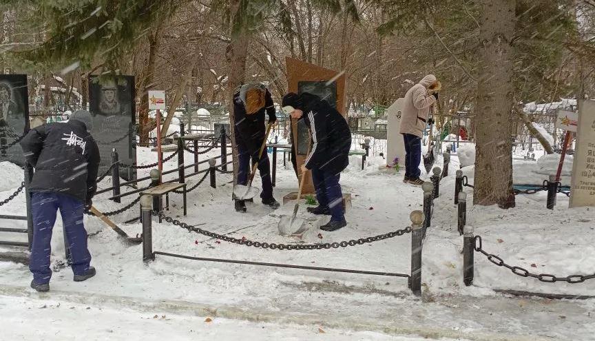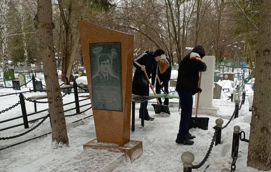 Лицеисты провели трудовой десант, очистив от снега захоронения воинов-афганцев и воинов контртеррористической операции на Северном Кавказе, а также подходы и близлежащую территорию возле памятников.