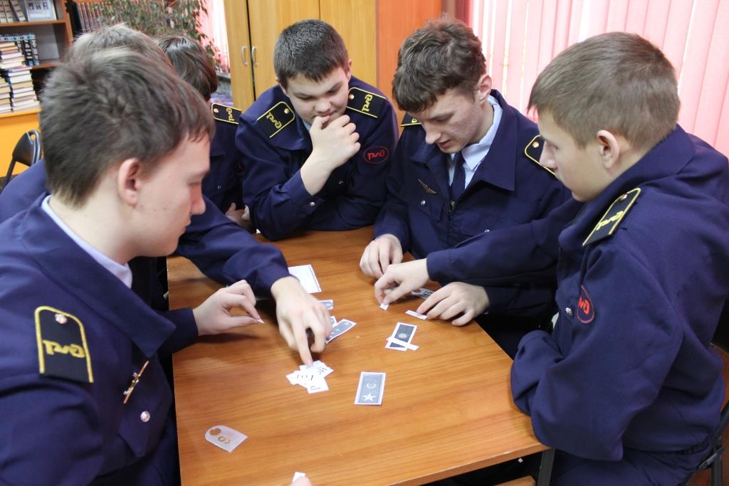 Студенты приняли участие в игре и выполнили ряд интересных заданий: составили пословицы о Родине, расшифровали закодированные слова об армии, сопоставили звания и погоны, ответили на вопросы викторины, спели песни военных лет.