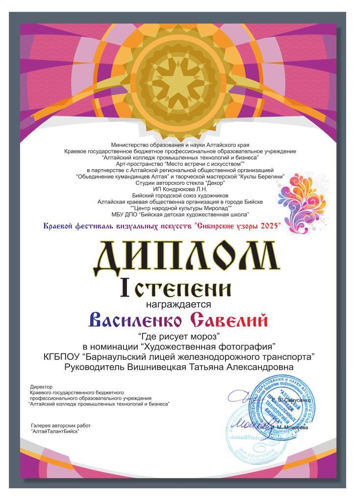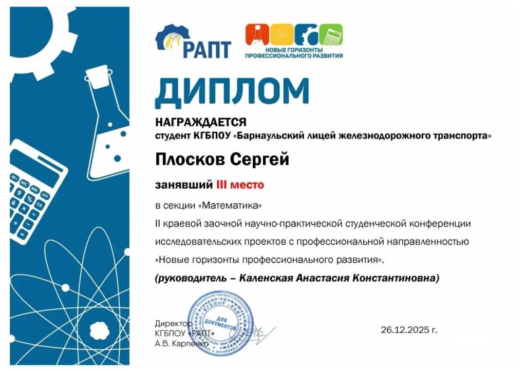 Лучшим информационным проектом стала работа сразу двух участников, набравших одинаковое количество баллов. Это работы Голубцова Данила из Бийского техникума лесного хозяйства и Бешаевой Екатерины - студентки Барнаульского лицея железнодорожного транспорта группы ПР 2211 Профессии 43.01.06 Проводник на железнодорожном транспорте.