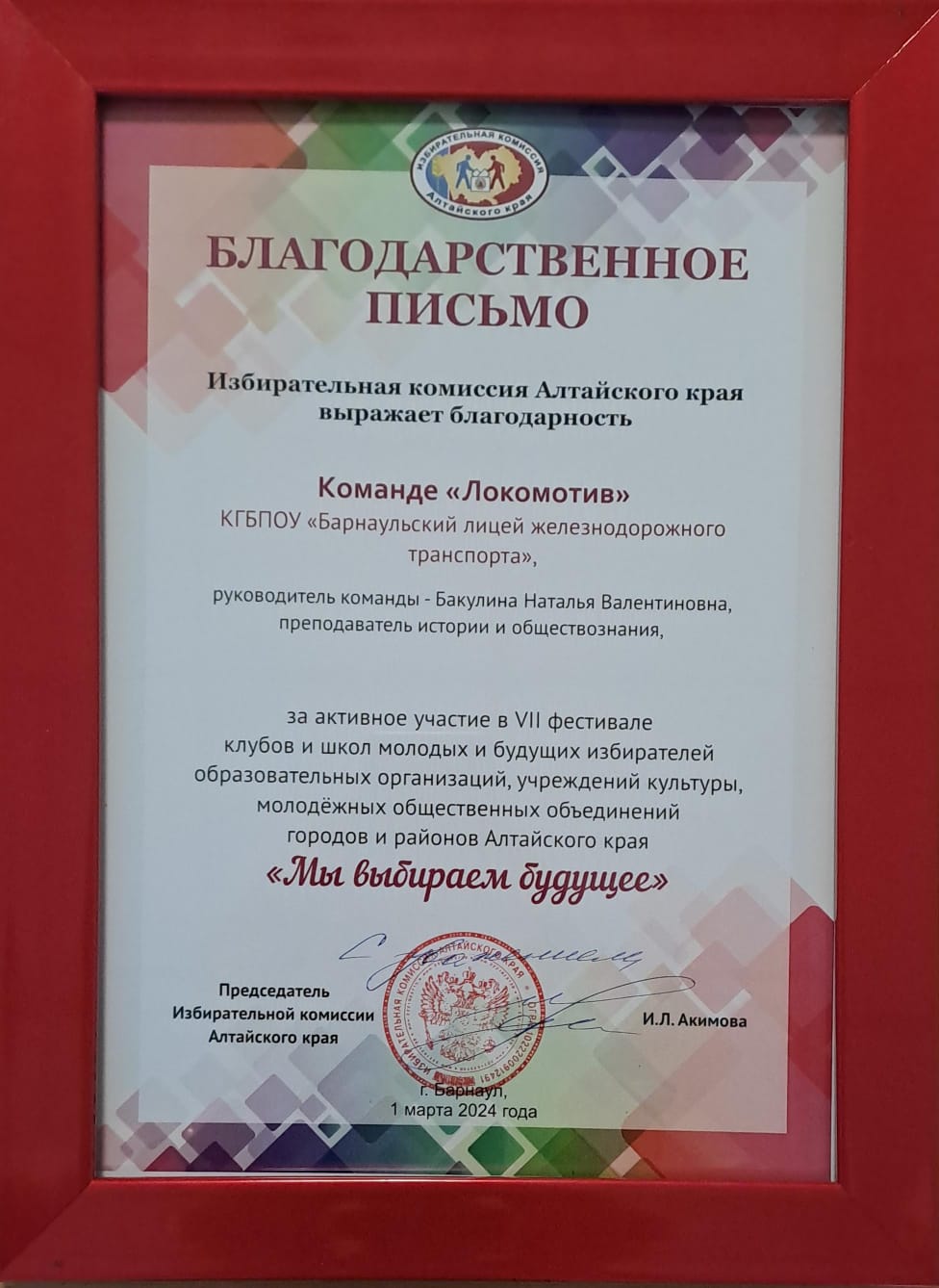 В этом году впервые в фестивале приняла участие команда молодых и будущих избирателей Барнаульского лицея железнодорожного транспорта.