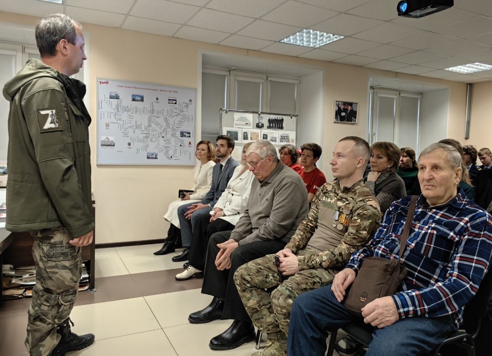На мероприятии лицеисты познакомились с почетными гостями-ветеранами железной дороги, участниками войн в Афганистане и Чечне, участником СВО железнодорожником Сергеем Юровым, «серебряными волонтёрами», которые плетут сети и отправляют гуманитарные грузы.